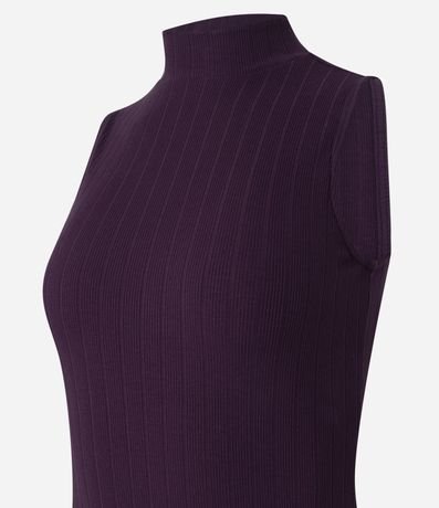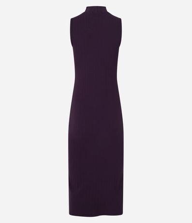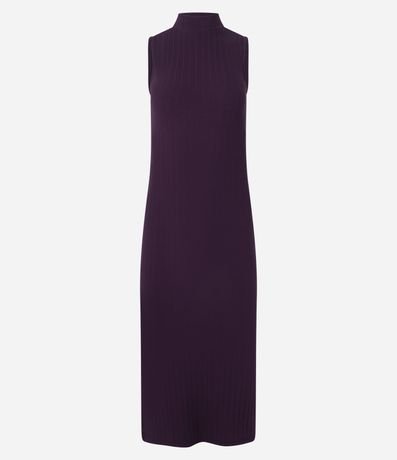 Vestido feminino de comprimento midi, confeccionado em malha ribana de viscose mais responsável, com golinha alta e sem mangas. Possui corte reto e textura canelada.