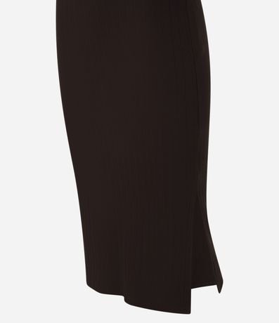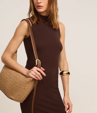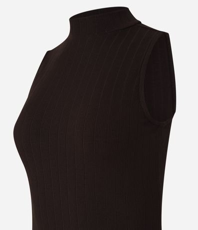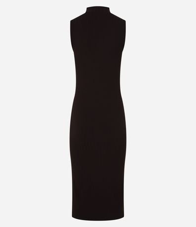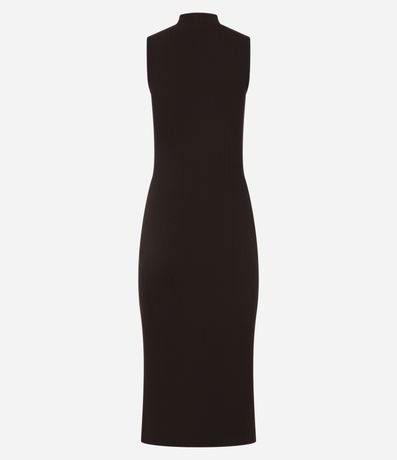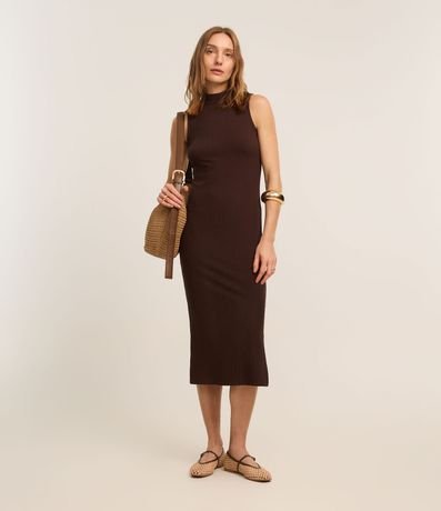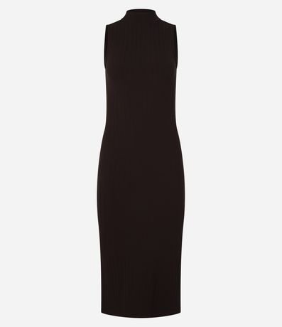 Vestido feminino de comprimento midi, confeccionado em malha ribana de viscose mais responsável, com golinha alta e sem mangas. Possui corte reto e textura canelada.