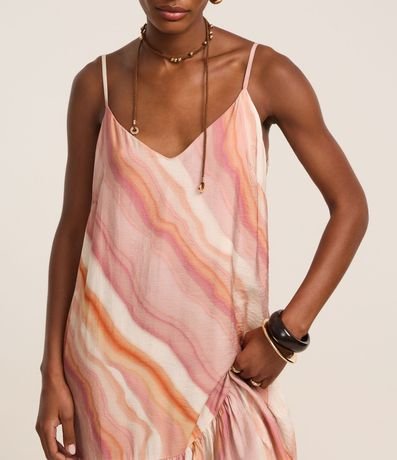 Vestido Midi com Alças Finas e Estampa Marmorizada