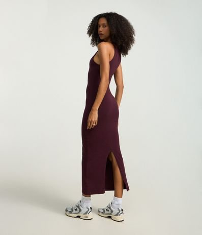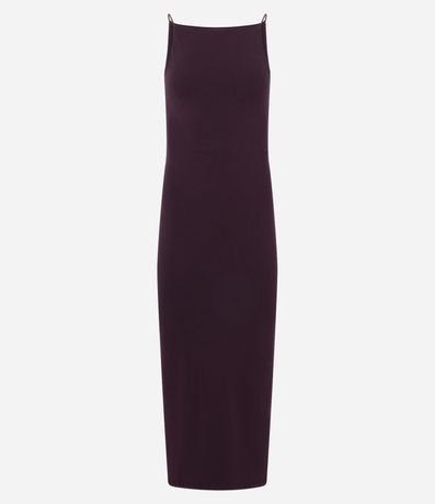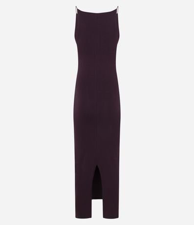 Ref: Vestido de modelo midi, confeccionado em material mais sustentável. Possui alças finas, decote reto e fenda traseira.