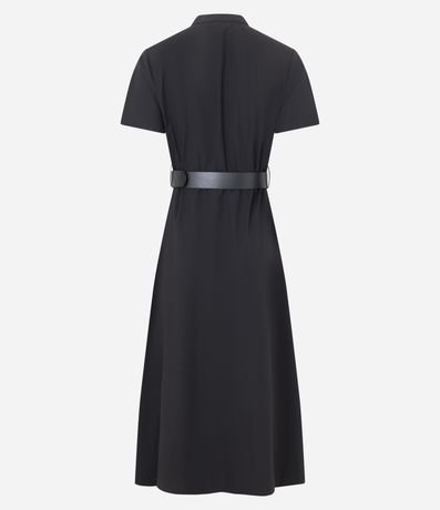 Vestido Midi Com Manga Curta e Cinto com Fivela