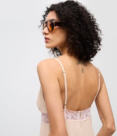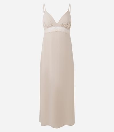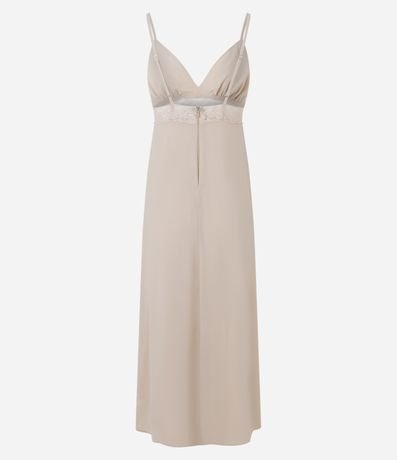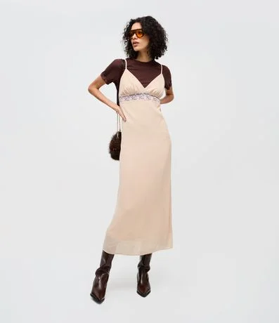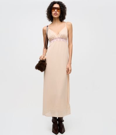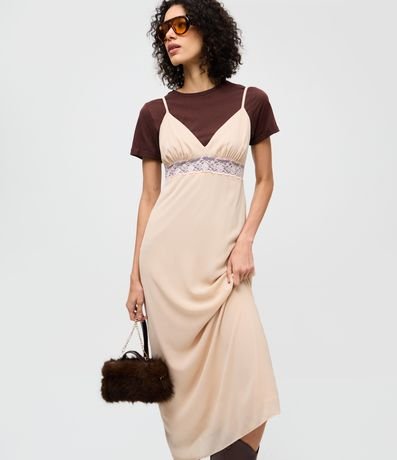 Vestido Midi de Alcinha em Chiffon com Renda no Busto