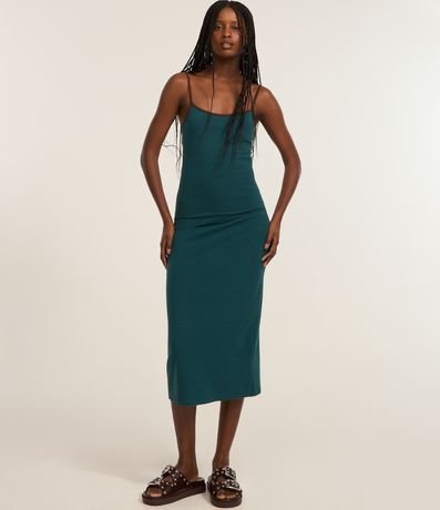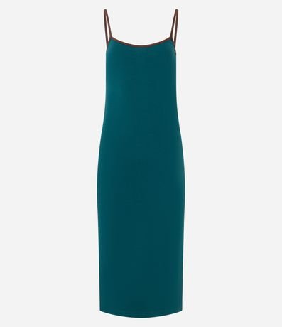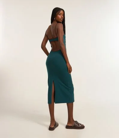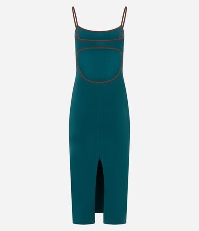 Ref: Vestido midi com alcinhas finas contrastantes, costas abertas, confeccionado em algodão bci mais sustentável e elastano, sem estampa e com fenda na parte de trás.
