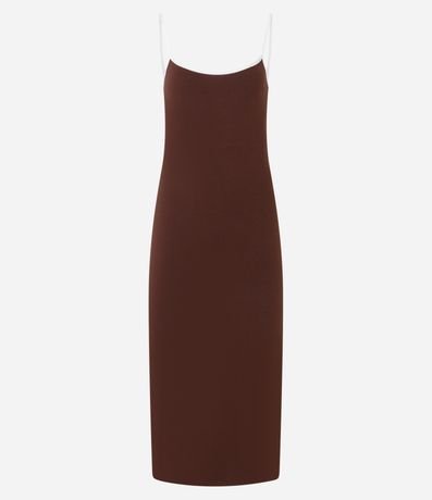 Ref: Vestido midi com alcinhas finas contrastantes, costas abertas, confeccionado em algodão bci mais sustentável e elastano, sem estampa e com fenda na parte de trás.