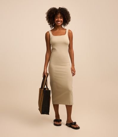 Ref: Vestido midi confeccionado em algodão com decote quadrado no busto e nas costas além de alças largas.