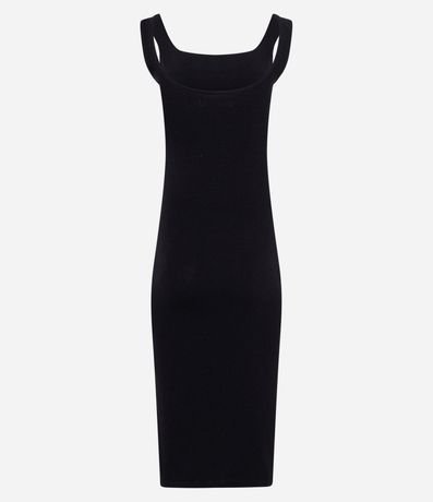 Ref: Vestido midi confeccionado em algodão com decote quadrado no busto e nas costas além de alças largas.