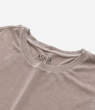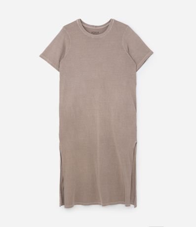Vestido midi, estilo camiseta, confeccionado em algodão com efeito estonado. Vestido com mangas curtas e gola redonda.