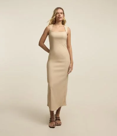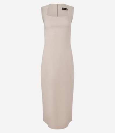 Vestido Midi em Bengaline com Fenda nas Costas