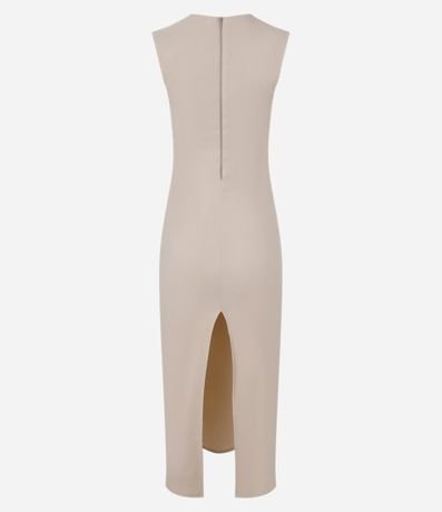 Vestido midi sem manga com fechamento por zíper nas costas, confeccionado em bengaline e com fenda na parte de trás.