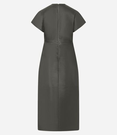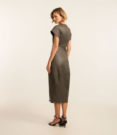 Ref: Vestido midi, balonê com manga curta, confeccionado em viscose certificada mais sustentável, pregas e bolsos laterais.