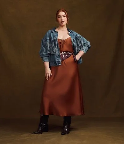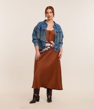Vestido Midi em Cetim com Alça Fina Curve & Plus Size