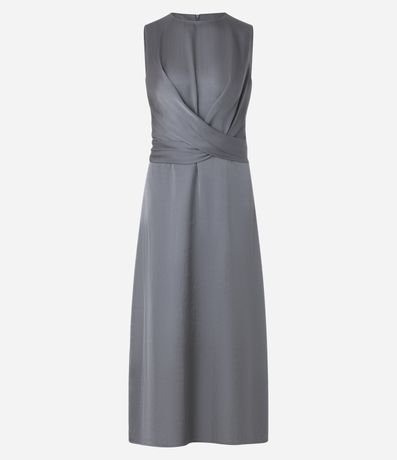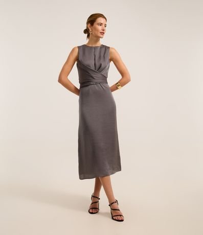Vestido Midi em Cetim com Torcido Frontal e Laço nas Costas