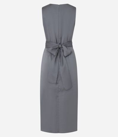 Vestido midi e sem mangas, confeccionado em cetim, com gola redonda e fechamento nas costas por zíper invisível. Peça conta cruzamento frontal e laço robusto para amarração nas costas. Este produto foi fabricado através de processos mais sustentáveis, adotando boas práticas ambientais.