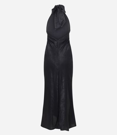 Vestido Midi em Cetim Frente Única com Amarração nas Costas