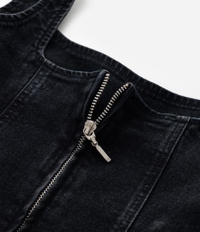 Ref: Vestido midi ajustado ao corpo, confeccionado em jeans com elastano, proporcionando maior conforto aos movimentos. A peça tem decote quadrado, alças largas, recortes verticais e fechamento por zíper nas costas.