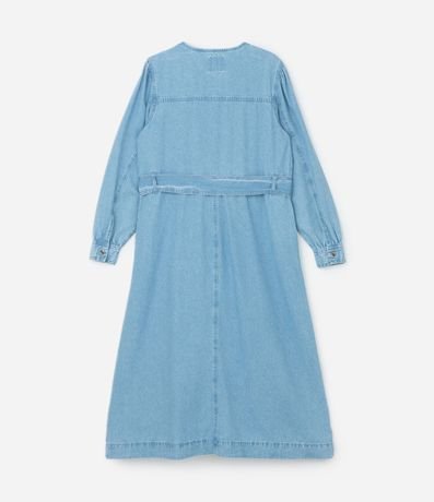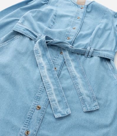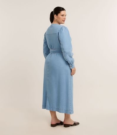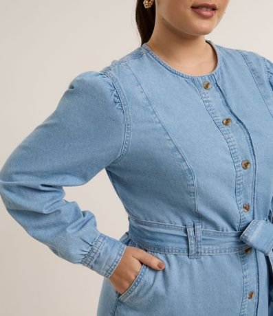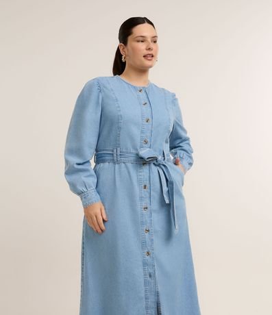 Ref: Vestido feminino Curve & Plus Size gola redonda, abotoamento frontal, manga longa ajustada. Peça no modelo midi, cintura com passantes e cinto de amarração. Esse produto é confeccionado com material certificado em melhores práticas ambientais.