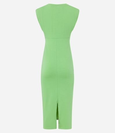 Vestido Midi em Meia Malha com Ombreira e Busto Franzido