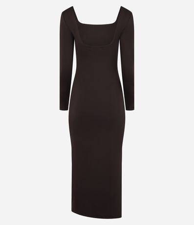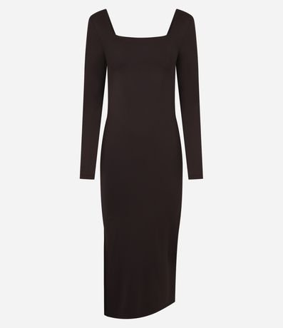 Vestido Midi em Microfibra com Decote Quadrado e Manga Longa