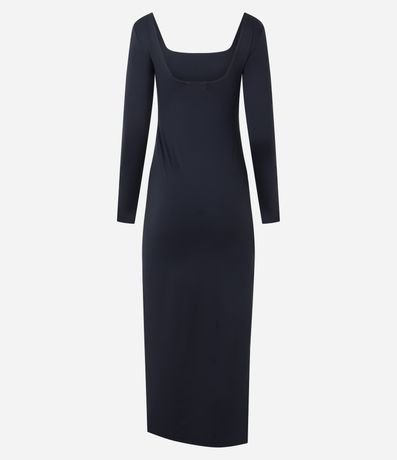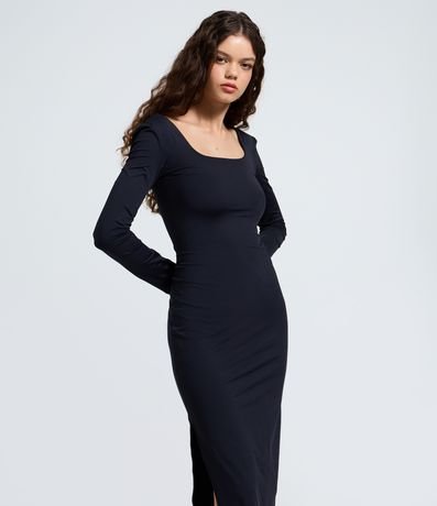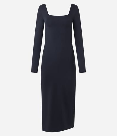 Ref: Vestido midi em microfibra com manga longa e decote quadrado. Possui modelagem ajustada que valoriza a silhueta e comprimento elegante. Ideal para compor produções versáteis do dia à noite, com visual moderno e toque confortável em ocasiões diversas cotidianas atuais.