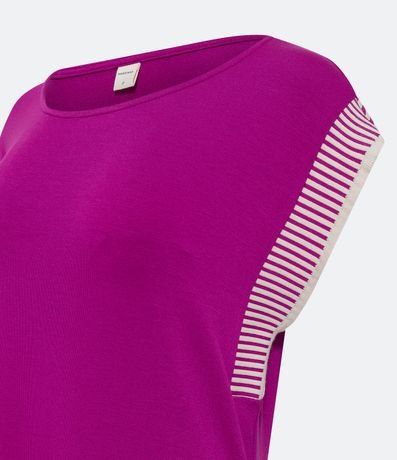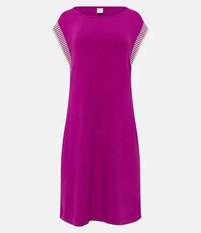 Ref: Vestido abaixo dos joelhos em moletinho, sem cavas com cavas de tricô listrado.