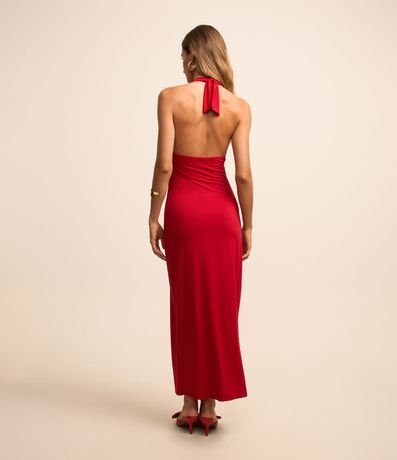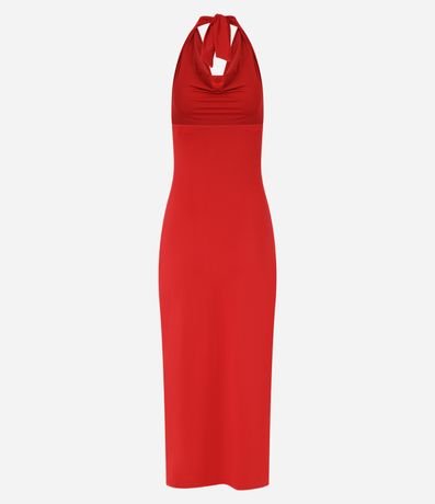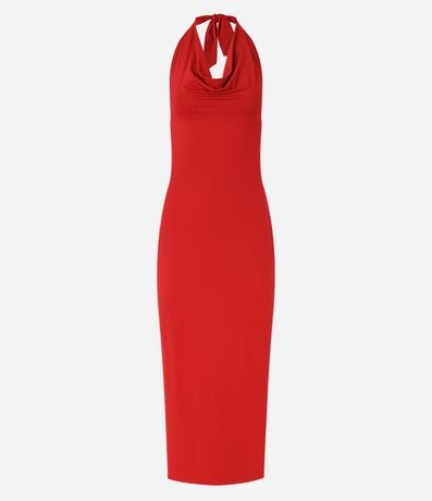 Ref: Vestido feminino confeccionado em poliamida, com decote degagê, sem mangas e amarração no pescoço.