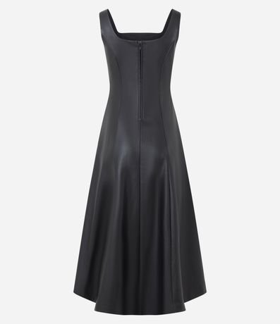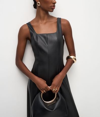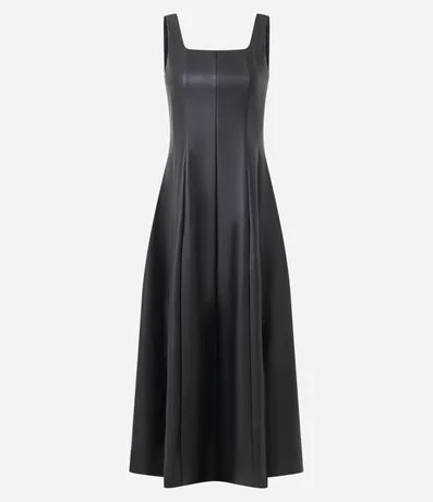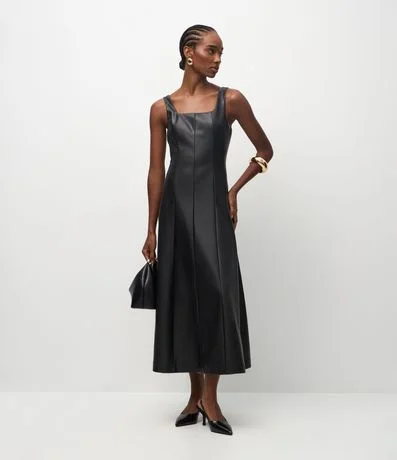 Vestido Midi em PU com Decote Quadrado