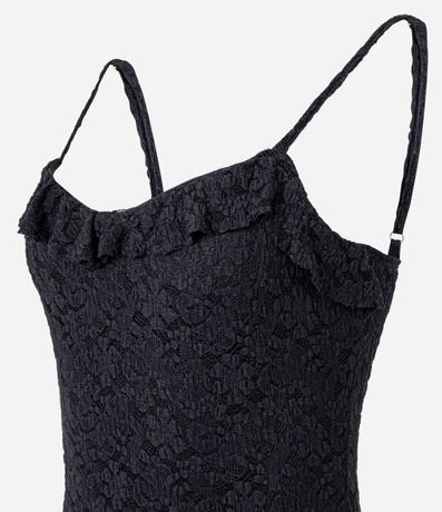 Vestido Midi em Renda com Alças Finas e Babados