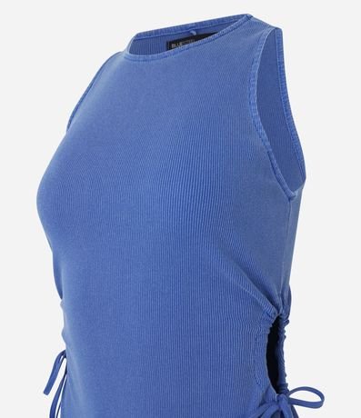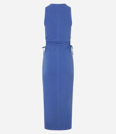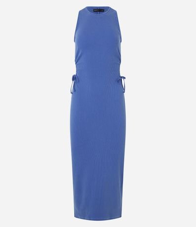 Ref: Vestido feminino confeccionado em ribana, no modelo midi, com gola redonda, sem mangas. Peça contém abertura lateral com amarração.