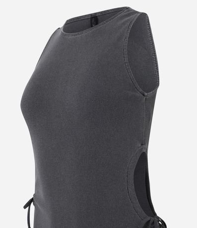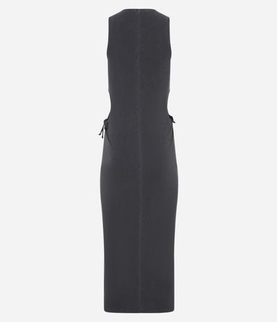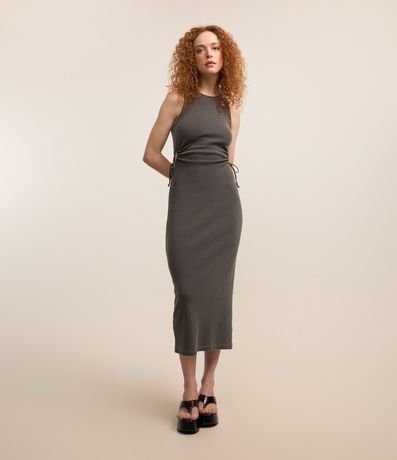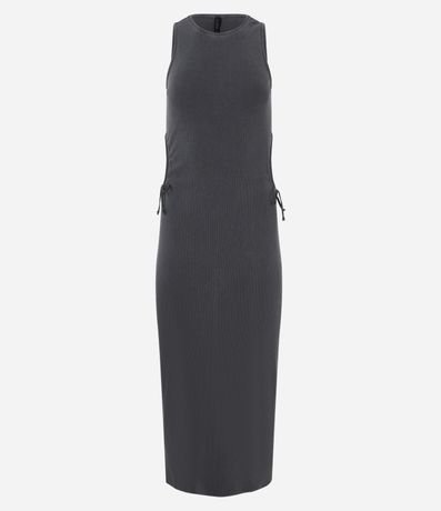 Ref: Vestido feminino confeccionado em ribana, no modelo midi, com gola redonda, sem mangas. Peça contém abertura lateral com amarração.