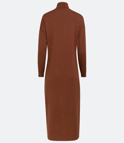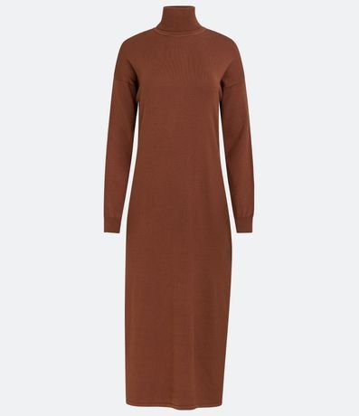 Vestido Midi em Tricô com Gola Alta e Manga Longa