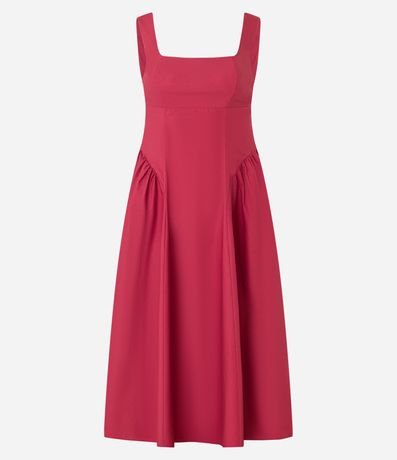 Ref: Vestido feminino confeccionado em tricoline de algodão mais sustentável com boas práticas ambientais, com alças largas, amarração nas costas, decote quadrado e detalhe franzido na saia.