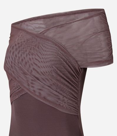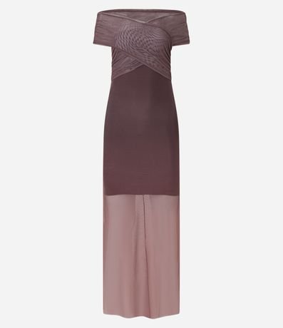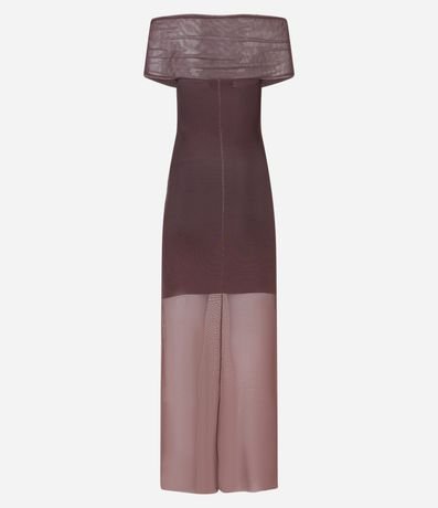 Ref: Vestido feminino midi confeccionado em tule com decote ombro a ombro e cruzado.