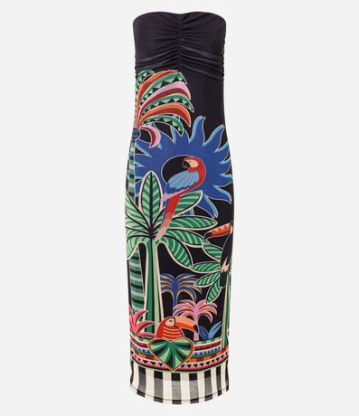 Ref: Vestido midi em tule com estampa tropical vibrante e decote coração. Possui franzido no busto, modelagem ajustada e transparência sutil na barra. Peça moderna e marcante, ideal para compor produções elegantes e cheias de personalidade para diversas ocasiões.