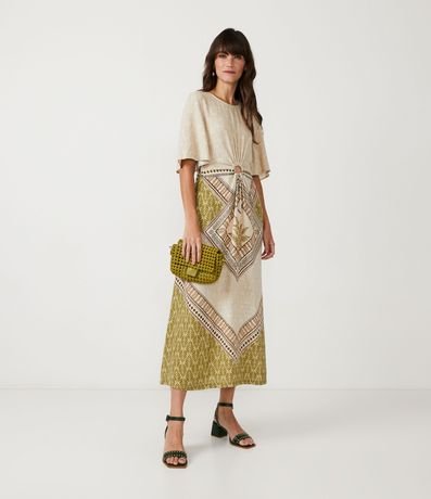 O viscolinho é uma mistura de linho e viscose. O material proporciona toque macio, caimento fluido e um visual sofisticado à peça. Além disso, traz conforto e leveza ao look, perfeito para os dias atuais.