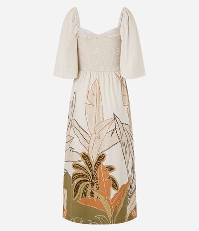 Vestido Midi em Viscolinho com Estampa Folhagem