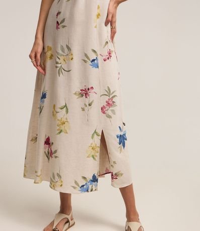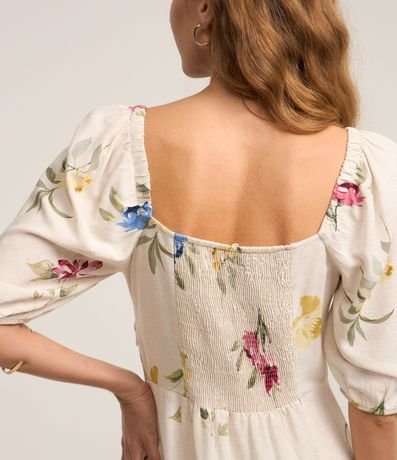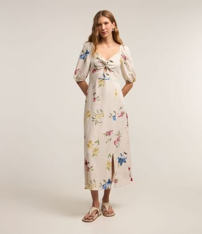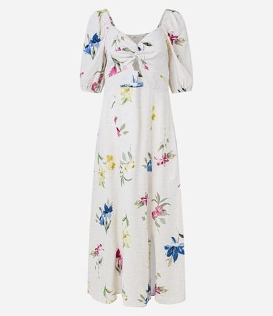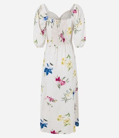 Vestido Midi em Viscolinho com Manga Bufante e Estampa Floral