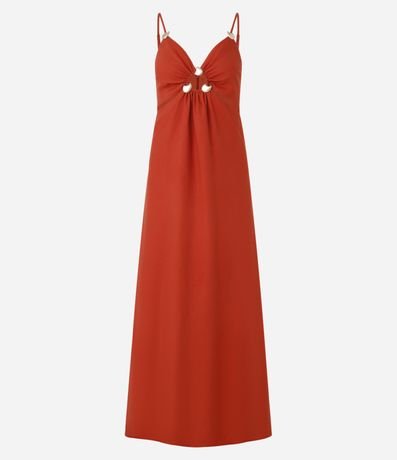 Ref: Vestido evasê em comprimento midi com alcinhas finas reguláveis, confeccionado em viscolinho com viscose certificada mais sustentável. Possui recorte cut out e aviamentos no busto e alças.