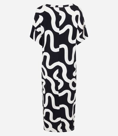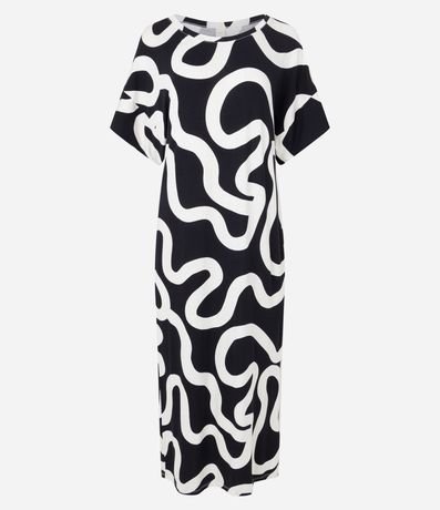 Ref: Vestido feminino, confeccionado em viscolycra mais sustentável, decote redondo, manga curta. Peça no modelo midi com estampa abstrata.