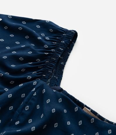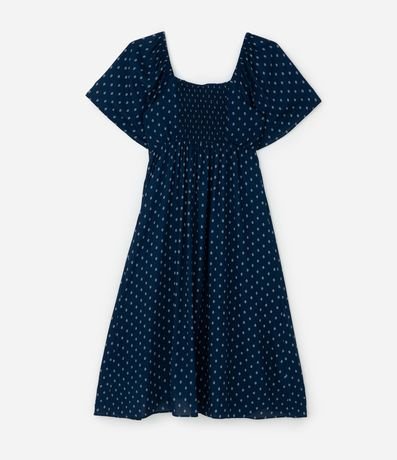 Ref: Vestido plus size feminino confeccionado em viscose chalis, com decote quadrado e mangas curtas amplas. Possui estampa gravataria, recorte em lastex nas costas e fenda na barra.
