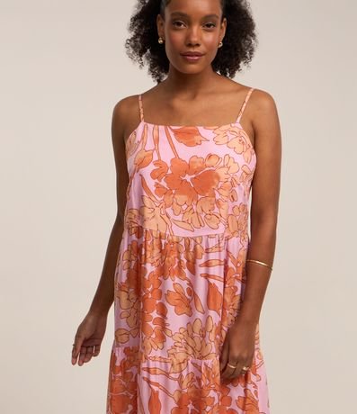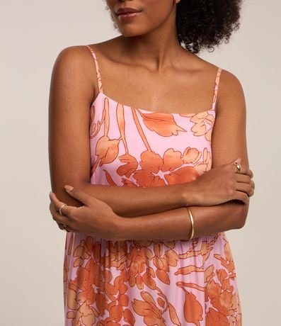 Vestido Midi em Viscose com Alcinha e Estampa Floral