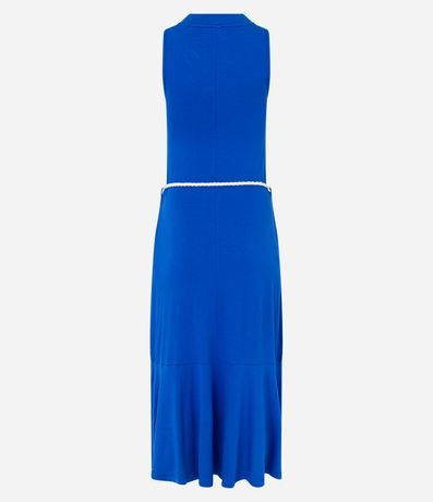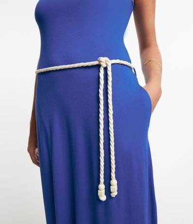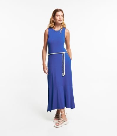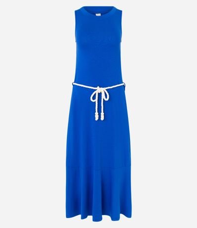 Ref: Vestido feminino, confeccionado em viscose mais responsável, com gola redonda e de modelo regata. Sem estampa, possui cinto corda para amarração na cintura e comprimento midi.