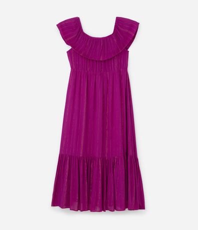 Vestido Midi em Viscose com Fio Metalizado e Decote Ombro a Ombro Curve & Plus Size
