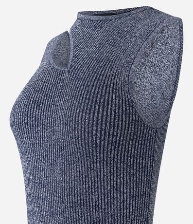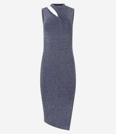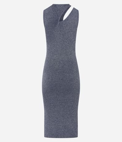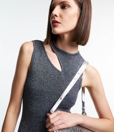 Ref: Vestido midi feminino, confeccionado em viscose, com recorte vazado no ombro e textura canelada. A peça também conta com detalhes em fio metalizado.