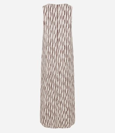 Vestido midi feminino confeccionado em viscose certificada através de boas práticas ambientais. Possui modelo evasê, alças largas com estampa ondulada