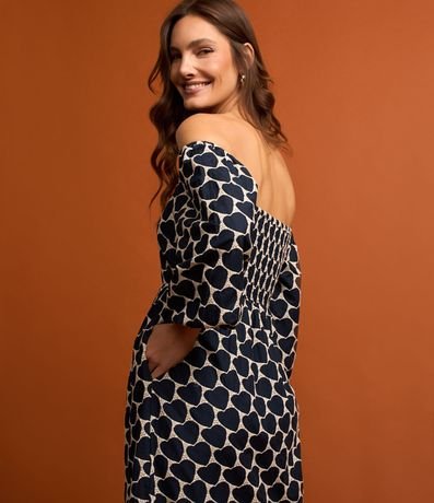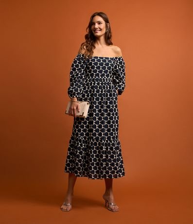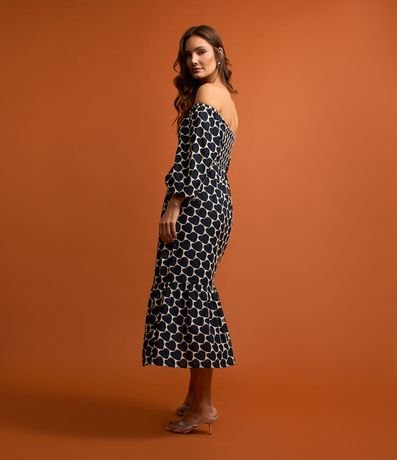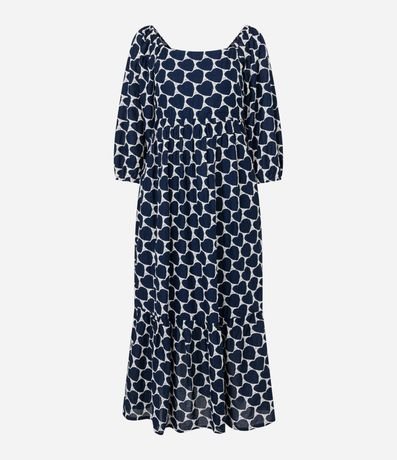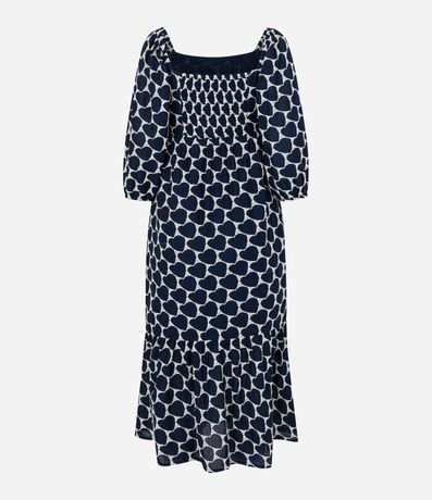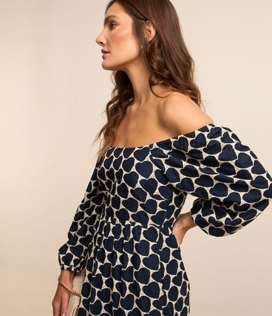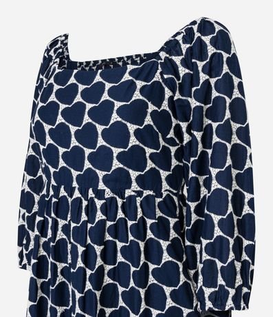 Ref: Vestido feminino, modelo midi evasê, confeccionado em laise mais sustentável, decote redondo, manga bufante. Peça com bordado de coração e recorte na barra.