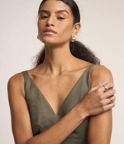 O viscolinho é uma mistura de linho e viscose. O material proporciona toque macio, caimento fluido e um visual sofisticado à peça. Além disso, traz conforto e leveza ao look, perfeito para os dias atuais.