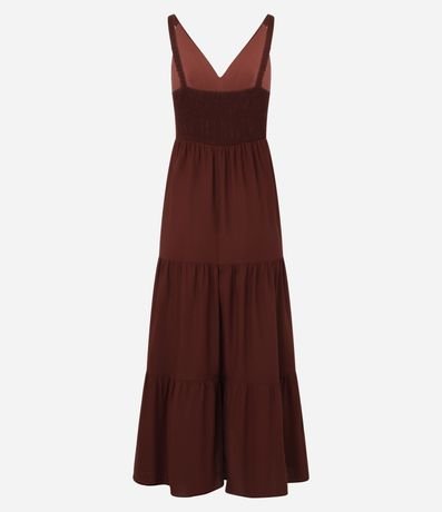 Ref: Vestido midi evasê confeccionado em viscose e linho, com deconte em v, alça fina e babados. Não acompanha o lenço.
