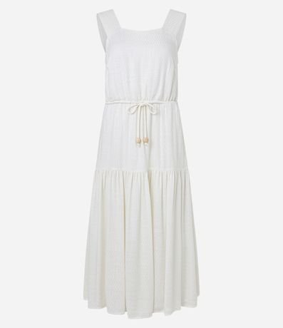 Vestido Midi Evasê Sem Manga em Viscolinho com Cinto de Cordão e Detalhes