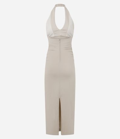 Ref: Vestido midi em bengaline com frente única e decote V, valorizando a silhueta com elegância. Possui design sem mangas e caimento estruturado, ideal para ocasiões especiais ou produções sofisticadas no dia a dia.