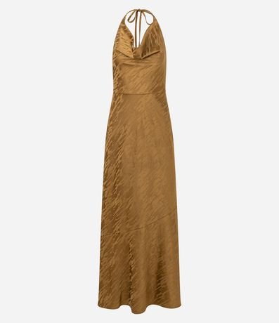 Vestido confeccionado em cetim, com decote degagê e amarração no pescoço que valoriza o visual sofisticado. Possui modelagem reta e comprimento midi, ideal para compor looks glamourosos em festas e happy hours. Peça leve e elegante para ocasiões especiais.